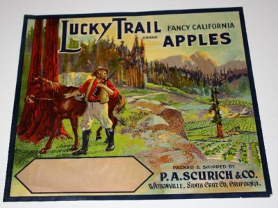 Vintage Lucky Trail Large Apple Crate Label P.A.Scurich