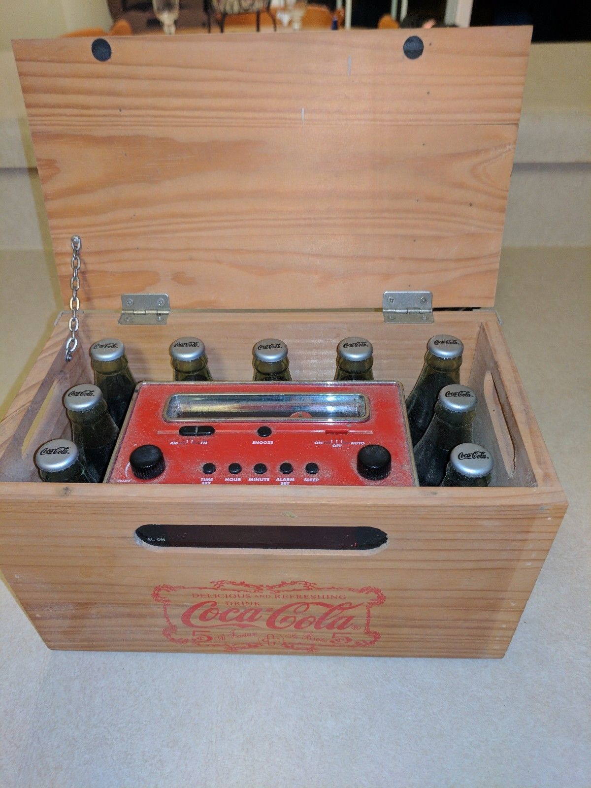 COCA-COLA Wood Crate AM/FM Clock Radio