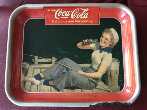 Title (ebay affiliate link): RARE 1940 COCA COLA Serving Tray Sailor Girl Fishing American Art Works