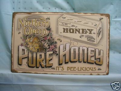 northern queen honey vintage look tin metal sign bees