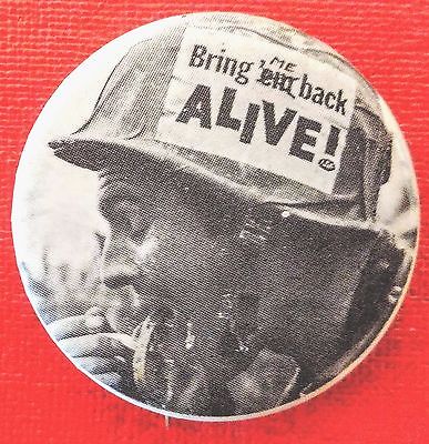 BRING ME BACK ALIVE! Soldier''s Helmet 1968 Da Nang, Vietnam Anti-War button