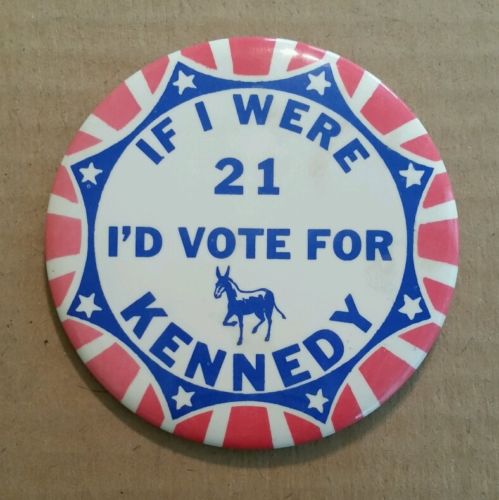 Title (ebay affiliate link): "If I Were 21 I''d Vote For Kennedy" 1960 Presidential Campaign Pin