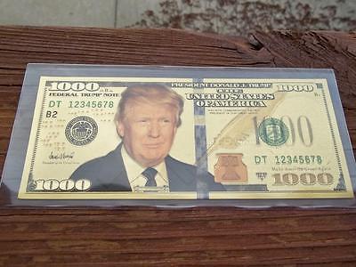 Title (ebay affiliate link): 1 DONALD TRUMP 24K GOLD FOIL $1000 BANK NOTE BILL! PRESIDENT TRUMP NOTE USA