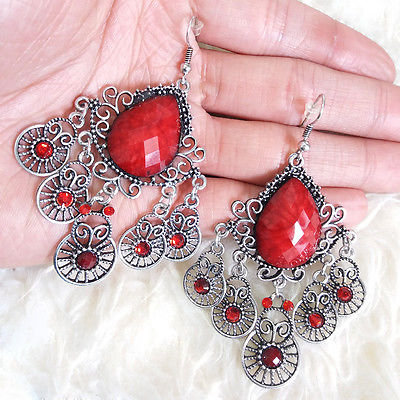 Title (ebay affiliate link): Antique Vintage Women''s Big Red Teardrop Gems Rheinstones Dangle Drop Earrings