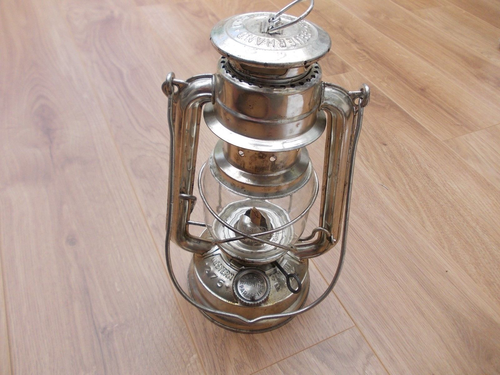 ORIGINAL FEUER HAND BABY 275 PARAFFIN HURRICANE LAMP SCHOOT GLASS WEST GERMANY
