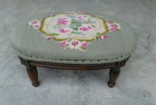 Title (ebay affiliate link): Vintage tapestry foot stool oval green pink roses floral