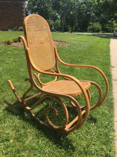 Title (ebay affiliate link): VINTAGE BENTWOOD THONET ROCKING CHAIR WOOD SIGNED DESIGNER FURNITURE