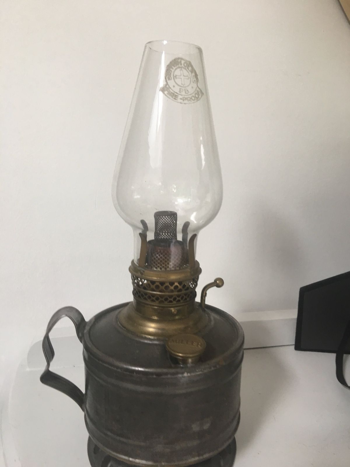 vintage victorian small metal hand held oil lamp MILLER,