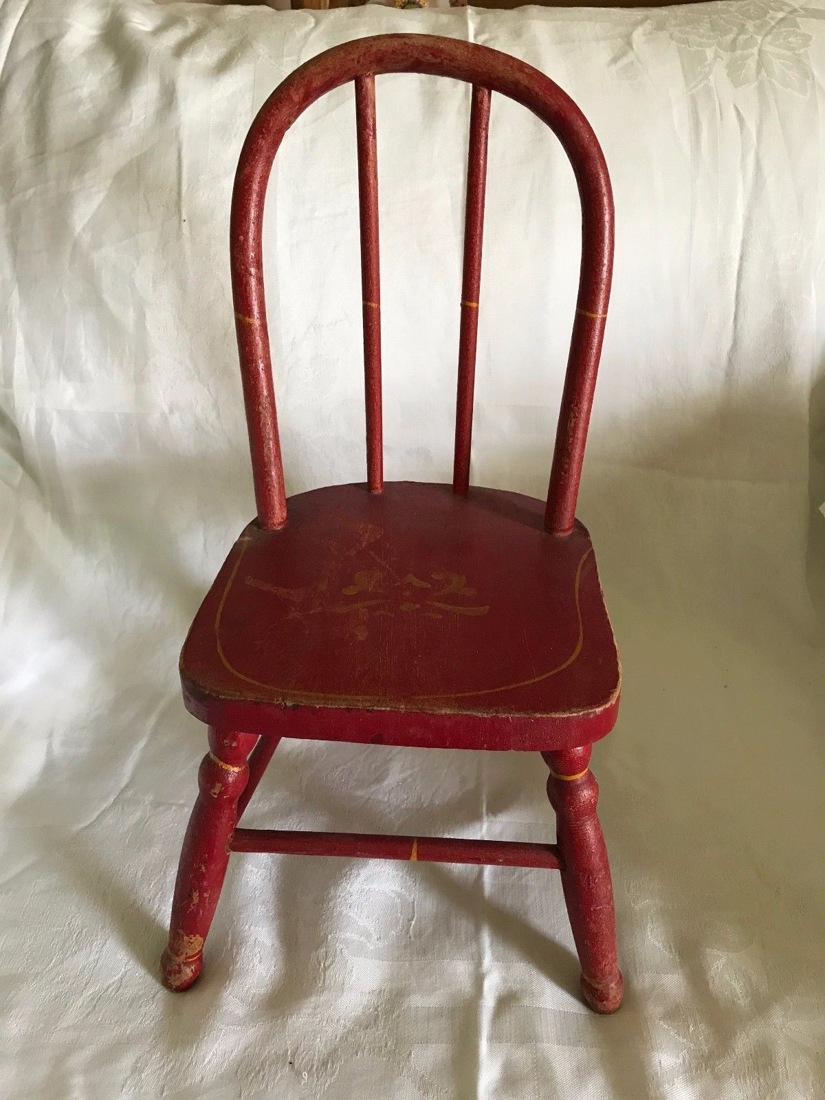 Title (ebay affiliate link): Antique primitive Bentwood Appleton childs toy wood chair red paint 17"