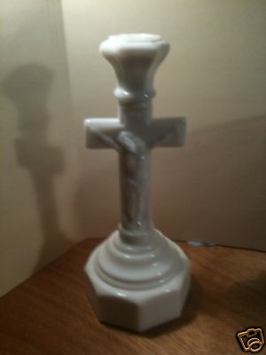 Milk Glass Crucifix Candle Holder