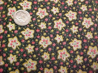 Vintage Antique Cotton Quilt Doll Fabric Star Flower on Black 36"wd Material 30s