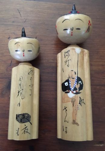 Title (ebay affiliate link): Vintage Antique Japanese Kokeshi Traditional Wooden Asian Doll Bobblehead Lot