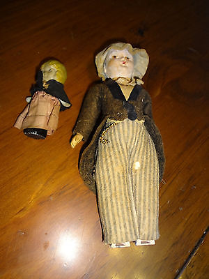 ANTIQUE DOLLS (2) 7 3/8" BOY & 3" GIRL - UNKNOWN MAKERS