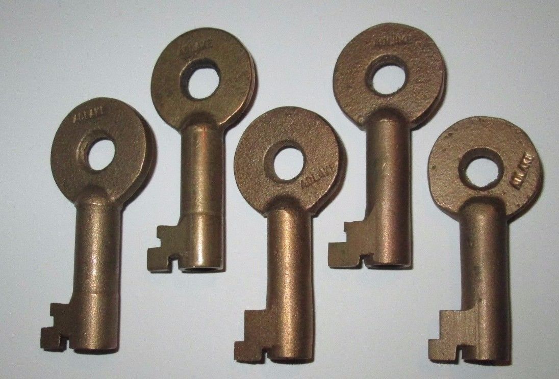 lot of 5 VINTAGE OPEN BARREL SOLID BRASS SKELETON KEYS LOCK PADLOCK TRUNK KEY