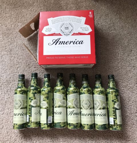 Title (ebay affiliate link): 8 Pack BUDWEISER AMERICA 16oz aluminum CAMOUFLAGE BOTTLE empty w/caps NR