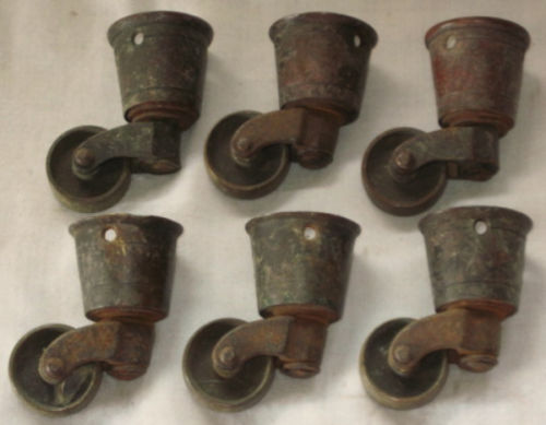 Title (ebay affiliate link): Vintage*BRASS & Iron CASTERS*Set of 6 Mini Cup Offset Wheeled Casters*Wheels