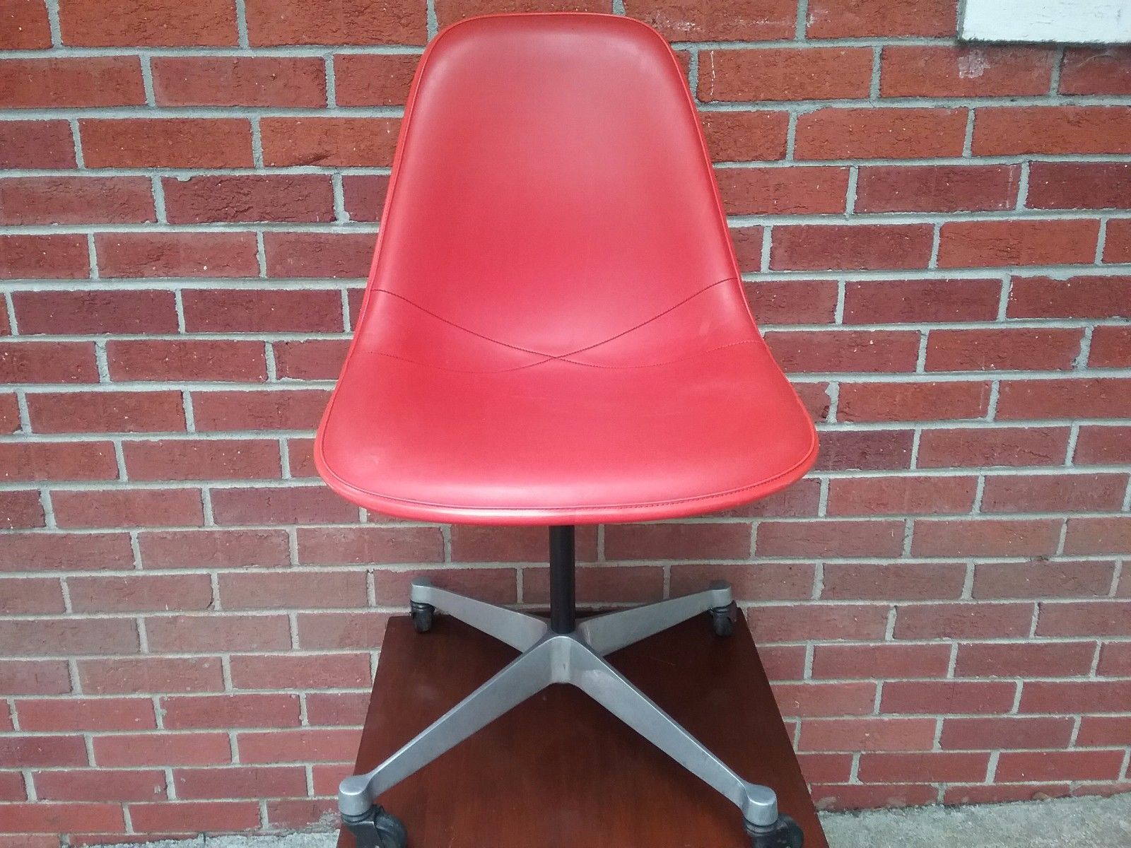 Title (ebay affiliate link): VINTAGE 1960s-70s HERMAN MILLER RED/ORANGE FIBERGLASS SHELL SWIVEL CHAIR!