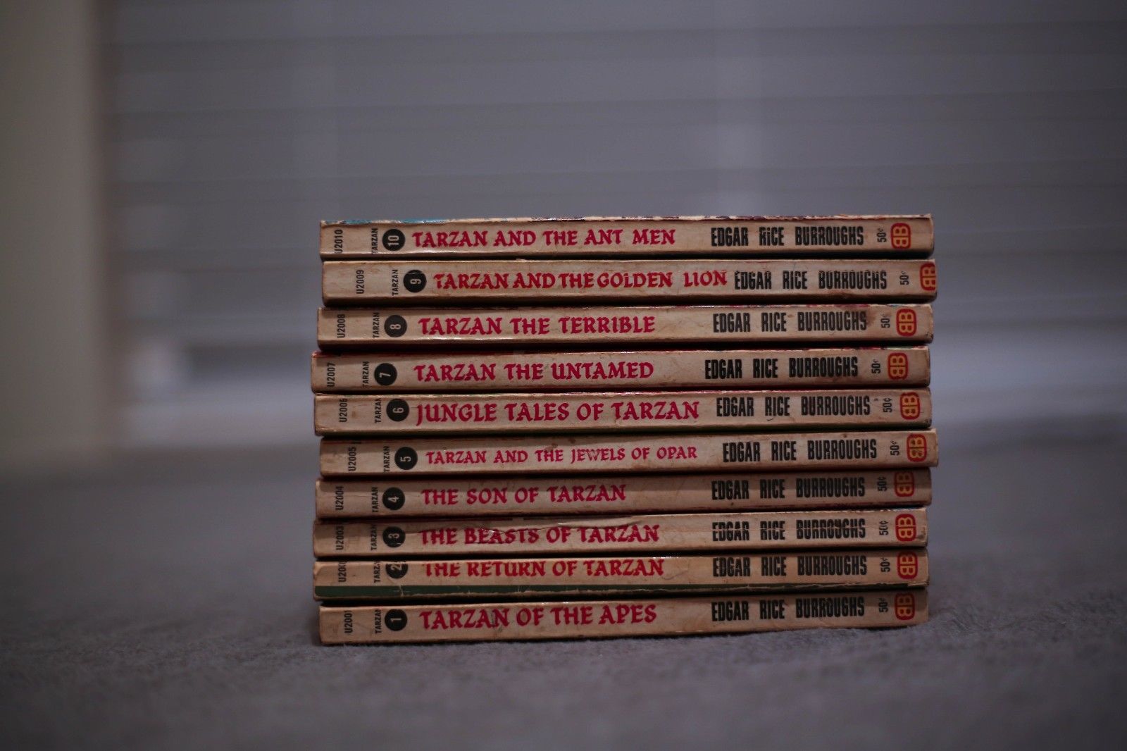 Title (ebay affiliate link): Tarzan #1-10 Ballantine paperback series, by Edgar Rice Burroughs