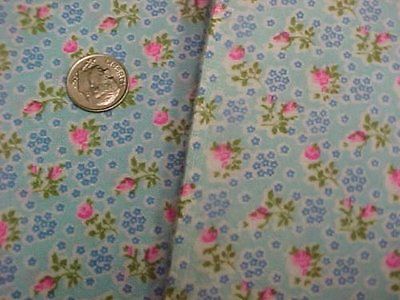 Vintage Antique Cotton Quilt Doll Fabric Flannel Tiny Roses on Aqua 36" Wide