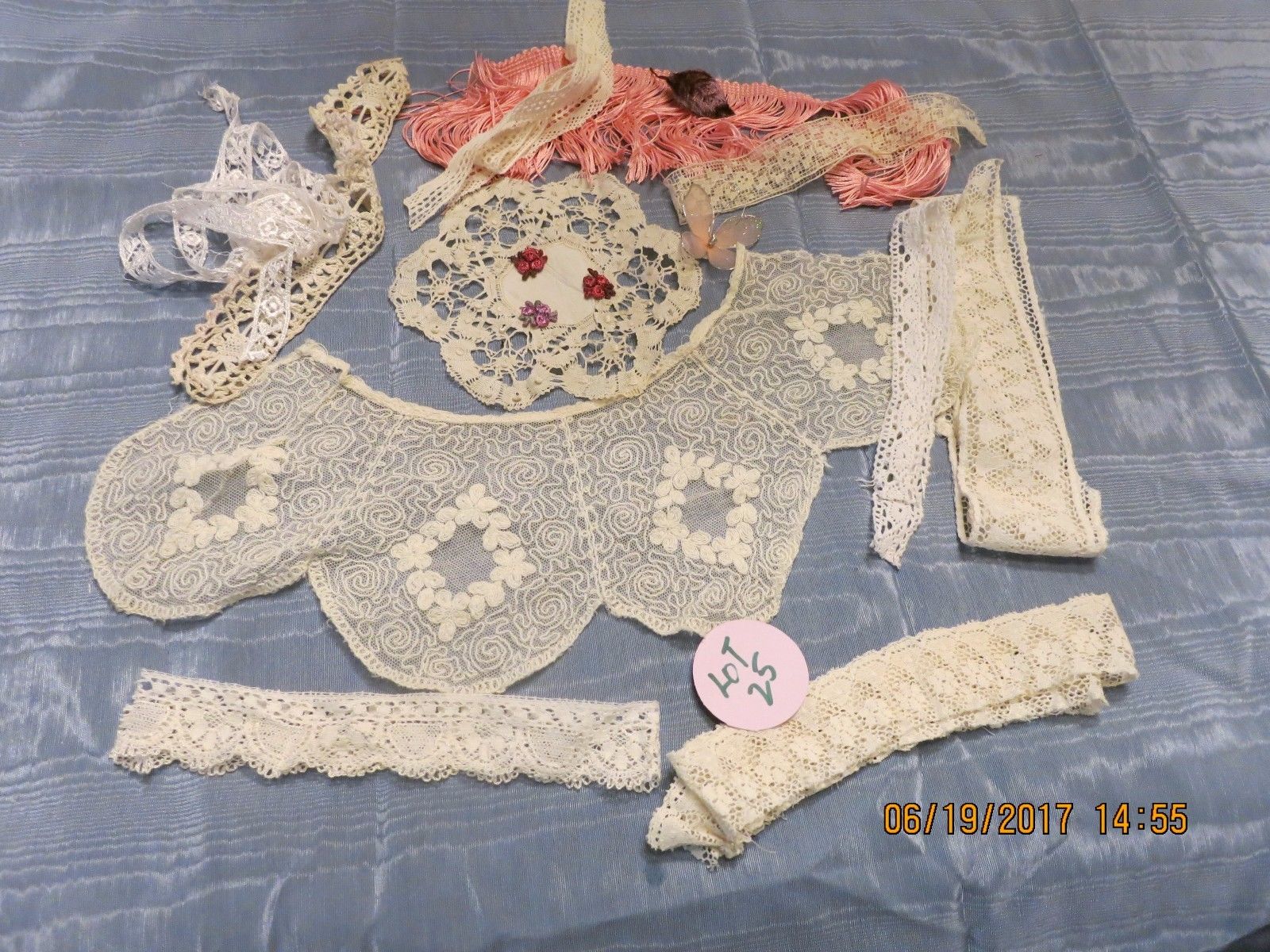 Title (ebay affiliate link): ANTIQUE 10 BITS AND PIECES LACES COLLAR PANEL FRINGE DOLLS ART WORK LOT25
