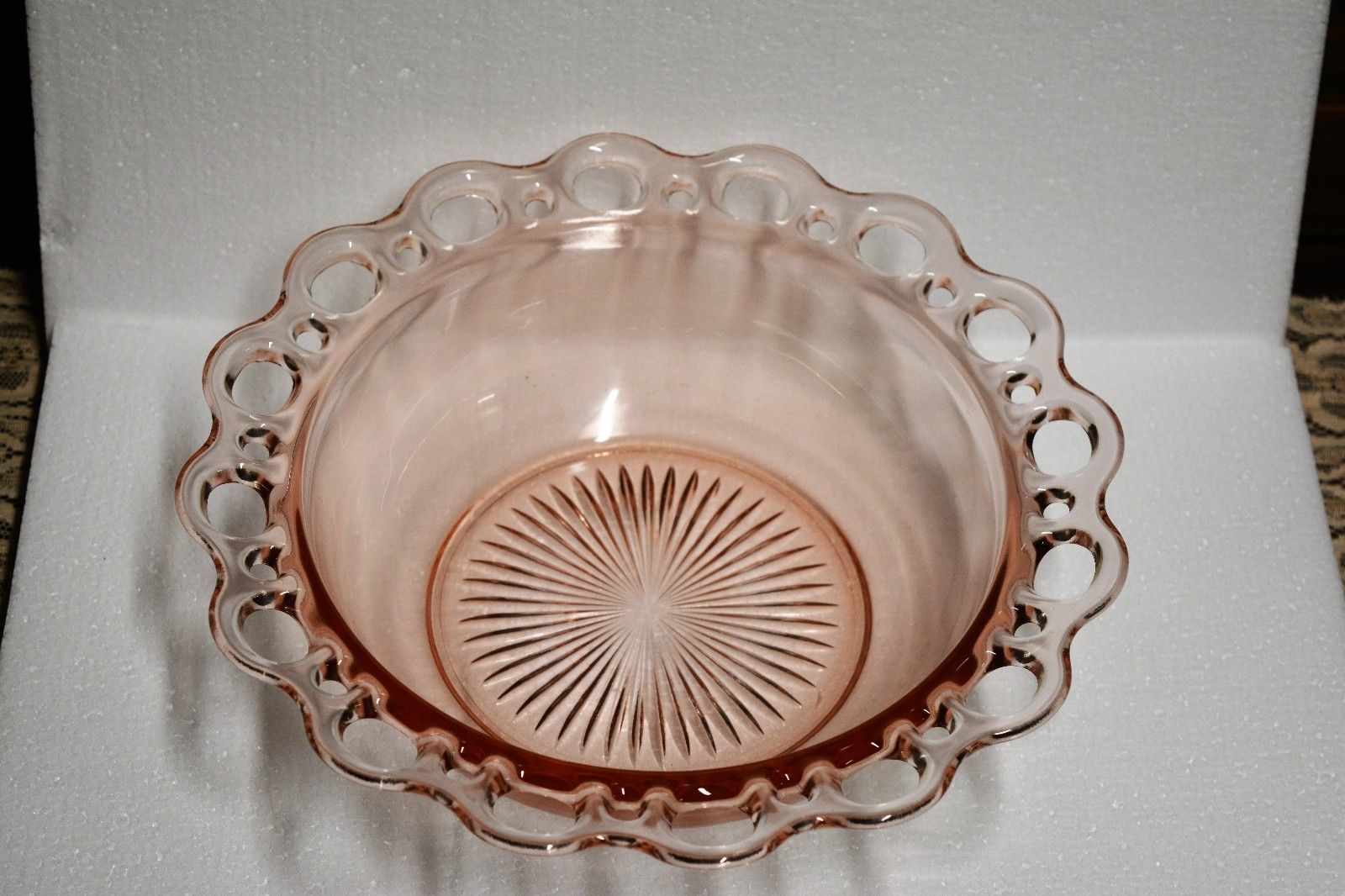 Title (ebay affiliate link): Vintage Old Colony Pink Depression Glass Serving Bowl "Open Lace"