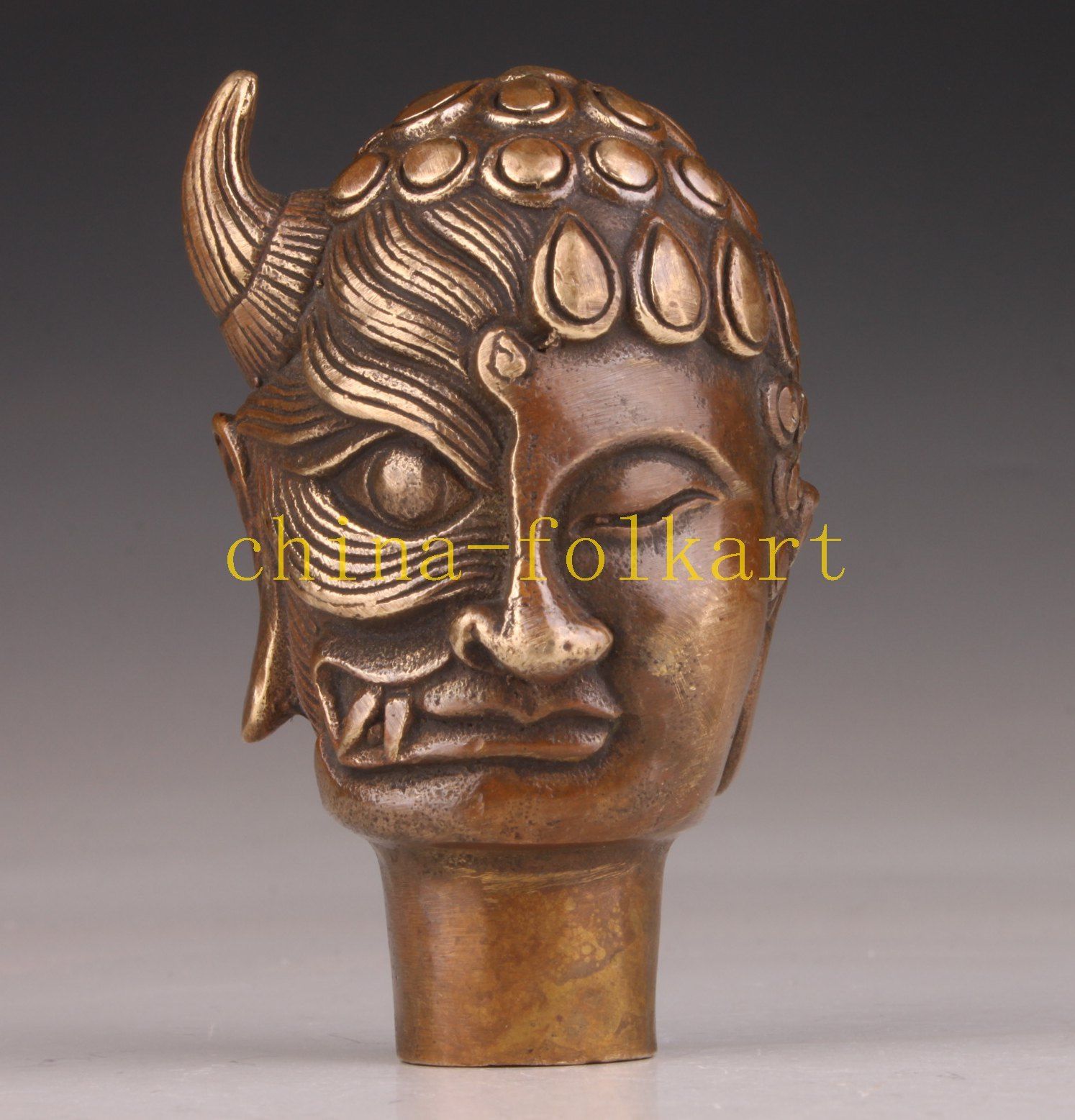 Title (ebay affiliate link): BRONZE STRANGE RARE DOUBLE BEADLE BEHALF KIND EVIL CANE WALKING STICK HEAD