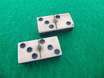 Antique Civil War Era Bone & Ebony Dominoes, X2, Great Camp Item!