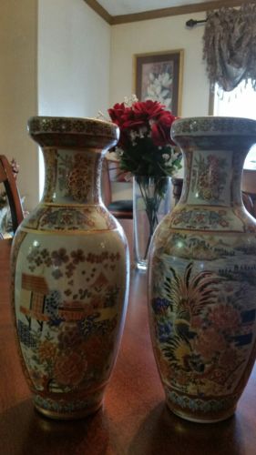 Title (ebay affiliate link): VINTAGE Satsuma 10" Japanese Vases (set of 2) ~ Made in China ~ Flowers, Birds