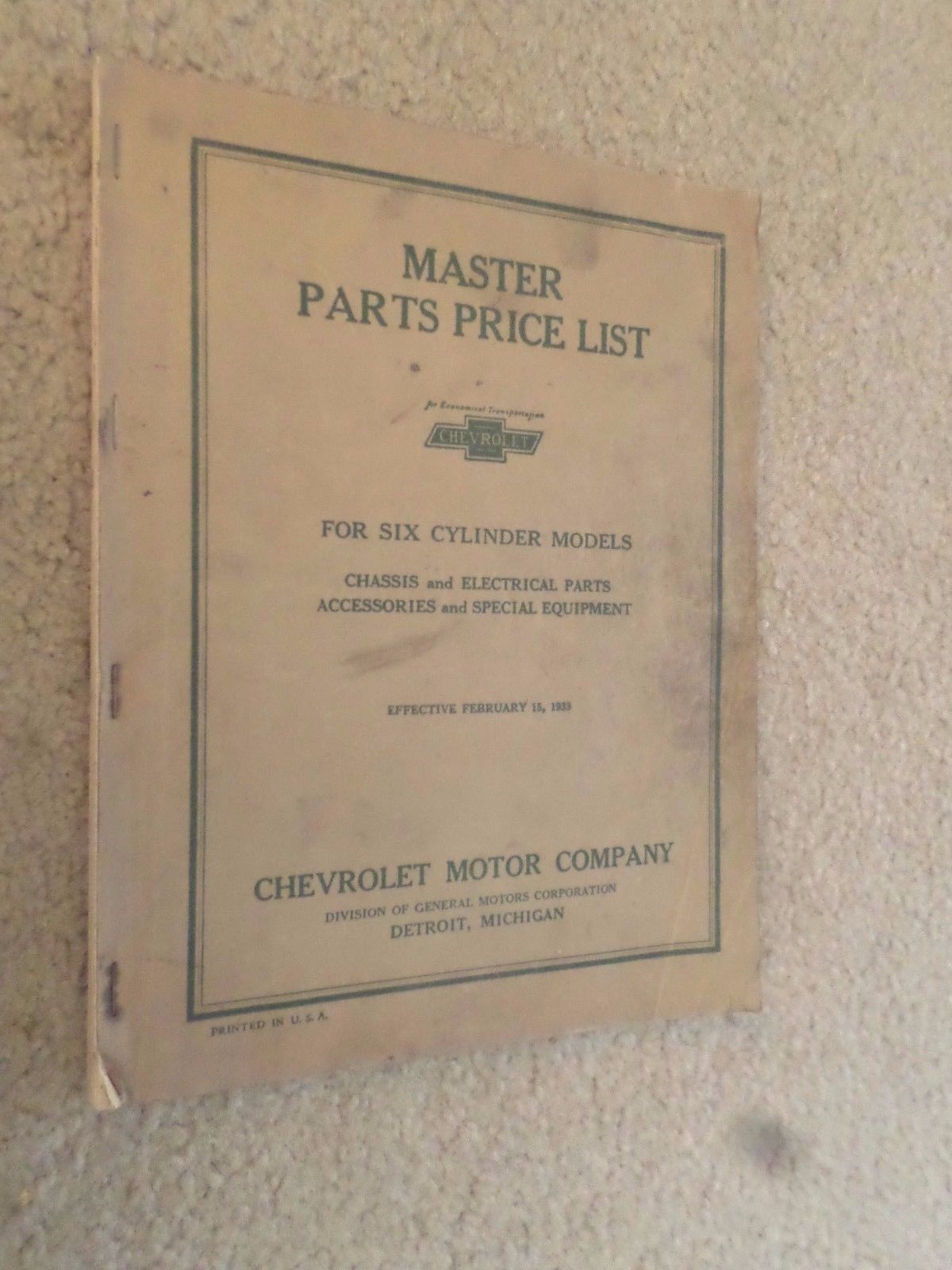 Title (ebay affiliate link): 1933 Chevrolet "SIX Cylinder" "Accessories+" Master Parts Price List Manual