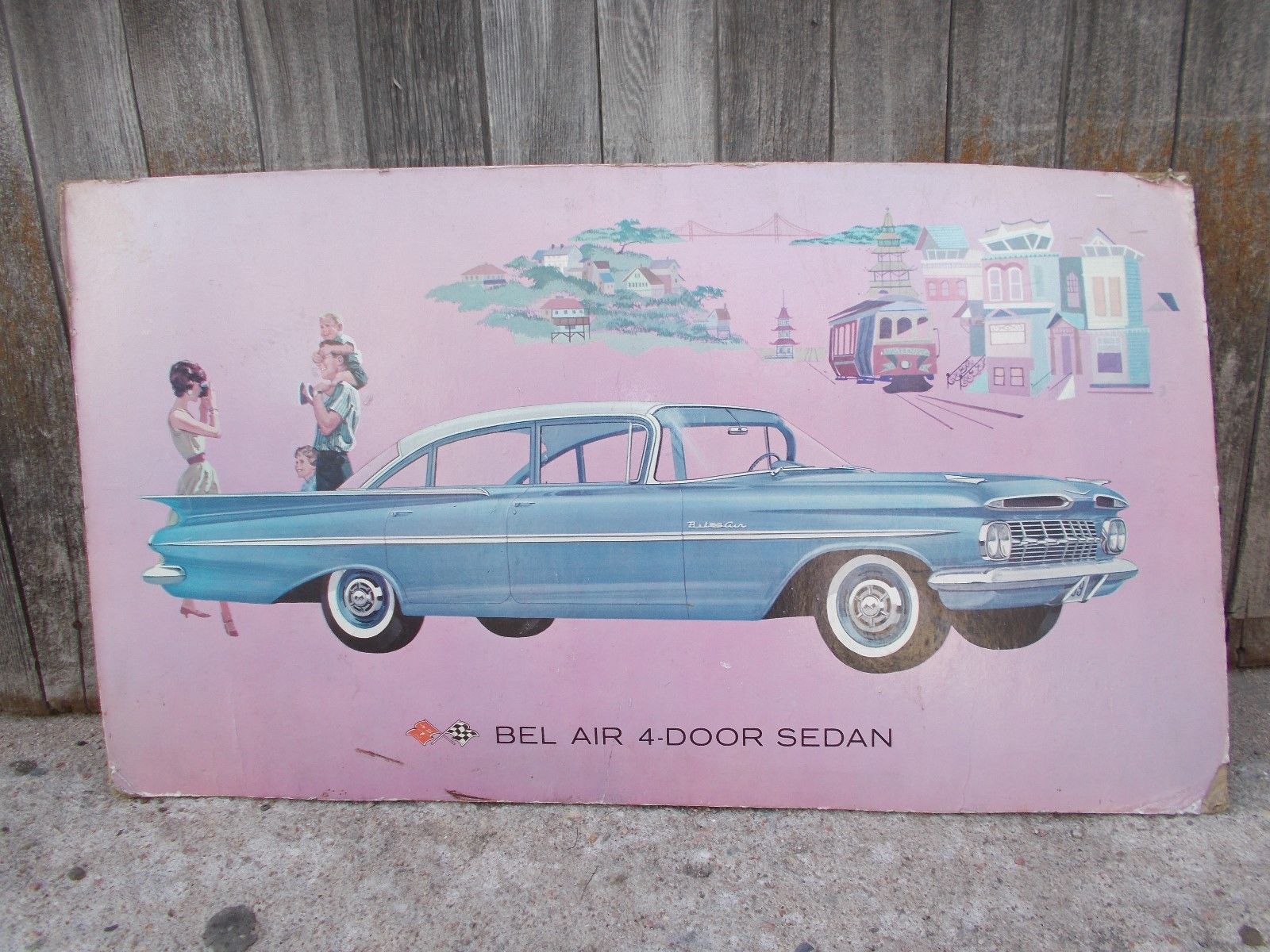 Title (ebay affiliate link): Vintage 1959 CHEVY Dealer Promo Board Bel Air 4 Door Sedan