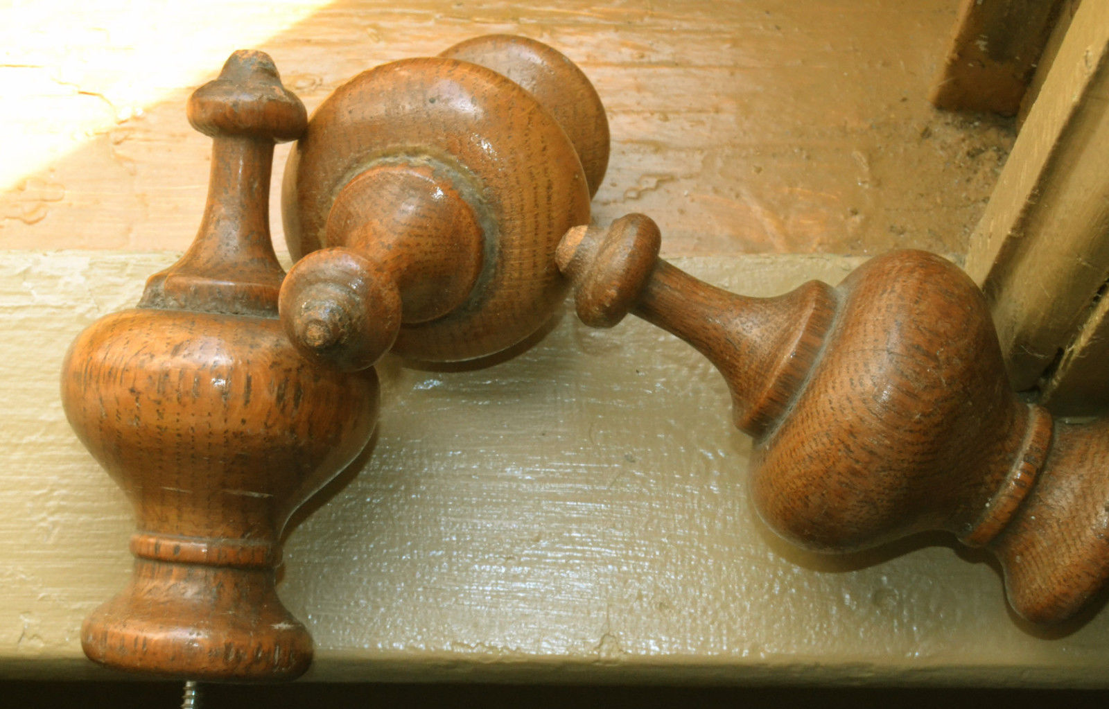 Title (ebay affiliate link): lot 3 vtg curvy wood turned hard wood furniture architectural finials 4.25" long