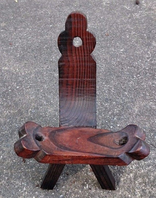 Title (ebay affiliate link): Unique Miniature Primitive Wood Birthing Chair - 3 Leg Stool