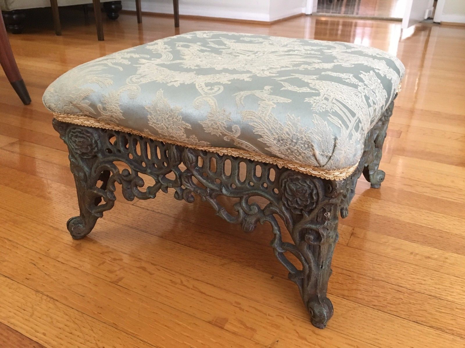 Title (ebay affiliate link): charming custom painted metal foot stool with Chinoiserie fabric.