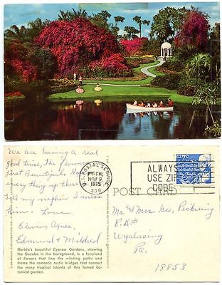 United States 1975 Postcard Florida - Cypress Gardens to Wyalnsing, Pennsylvania