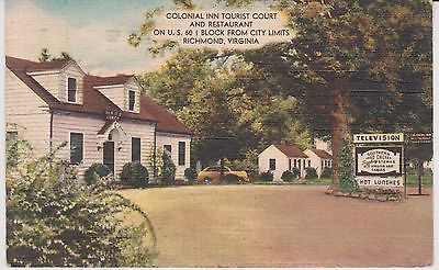 RICHMOND VA VIRGINIA POSTCARD COLONY COLONIAL INN TOURIST COURT RESTAURANT 1950