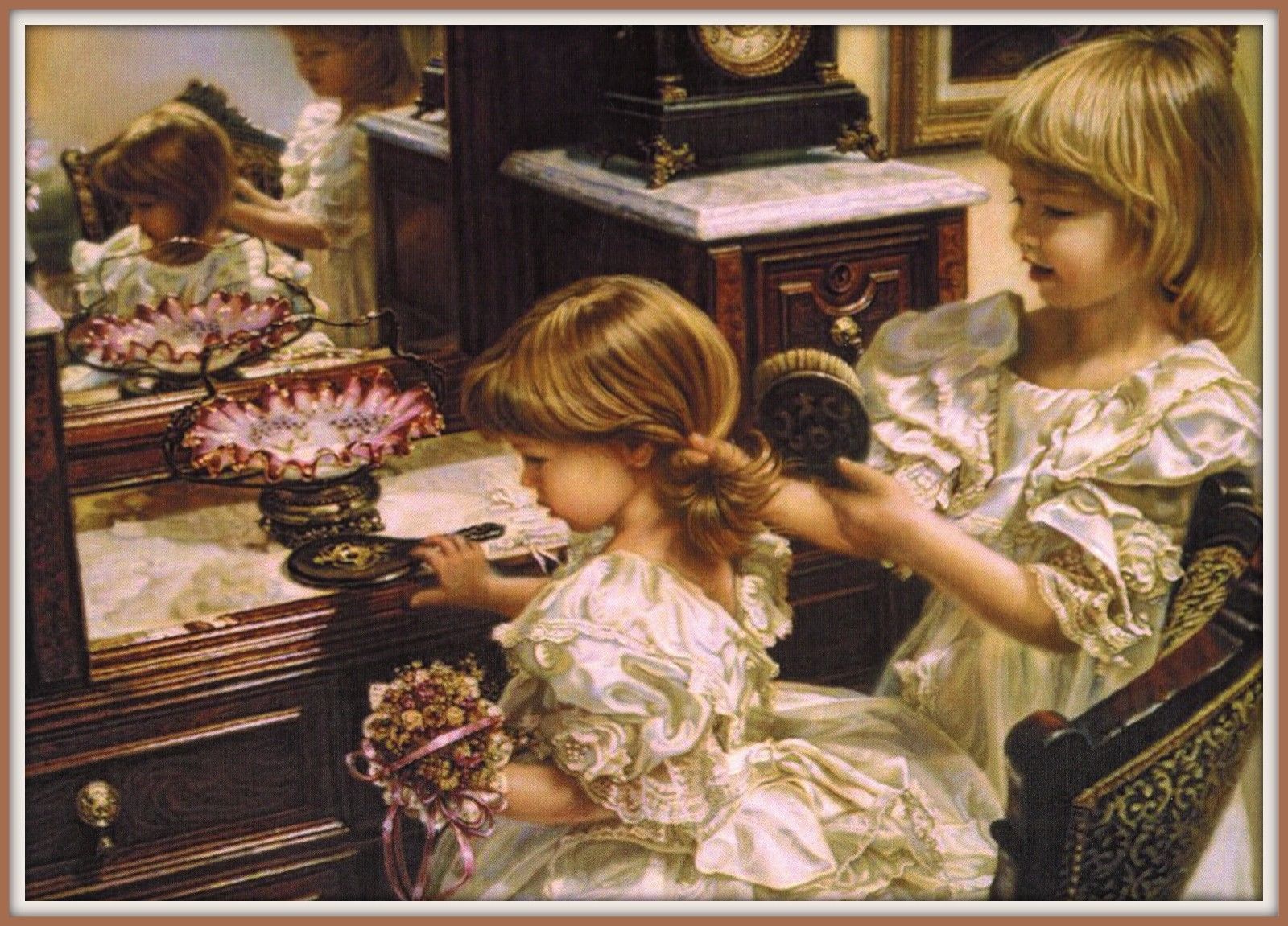 Title (ebay affiliate link): KIDS IN ART Two Girls DRESS Mirror LITTLE FASHIONISTA Russian Postcard modern