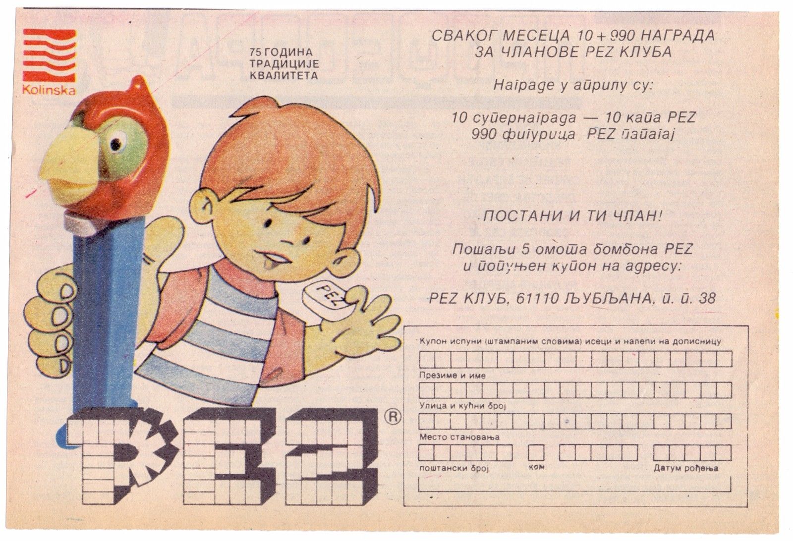 PEZ - NEWSPAPER COMMERCIAL ADVERTISEMENT - CHILD AND PARROT DISPENSER