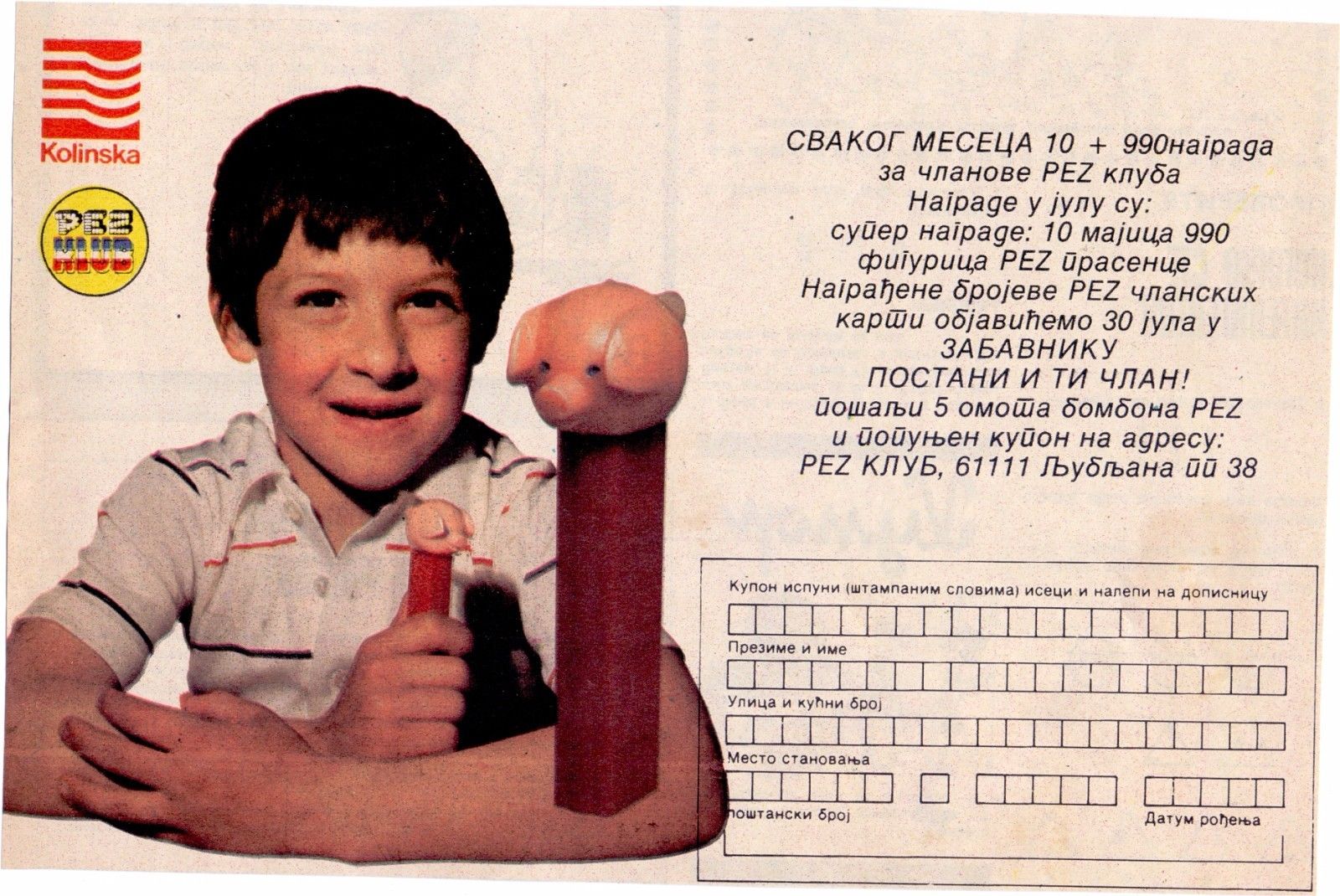 PEZ - NEWSPAPER COMMERCIAL ADVERTISEMENT - CHILD AND PIG DISPENSER