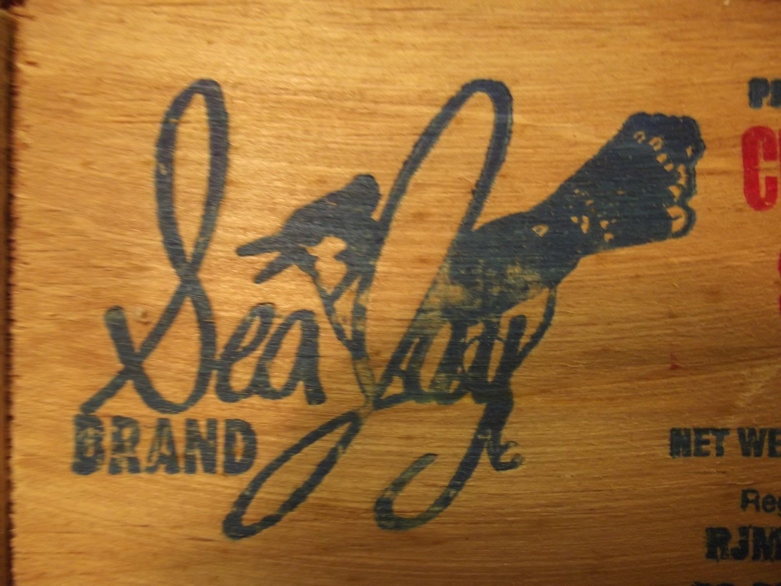 Title (ebay affiliate link): RARE Vintage 16 oz. SEAJAY Brand Salt Codfish Wooden Advertising Crate Box