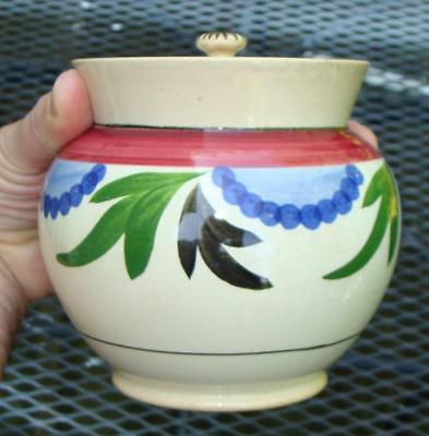 Antique Leeds Style Pearlware Hand Painted Covered Sugar Bowl, c. 1800
