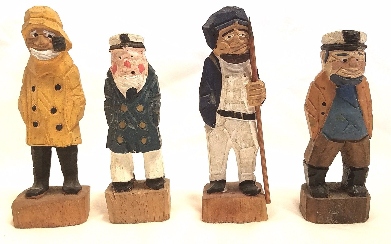 Title (ebay affiliate link): Lot Of 4 Hand Carved Wood Fishermen Captains Sailors - 4" to 4 1/2"