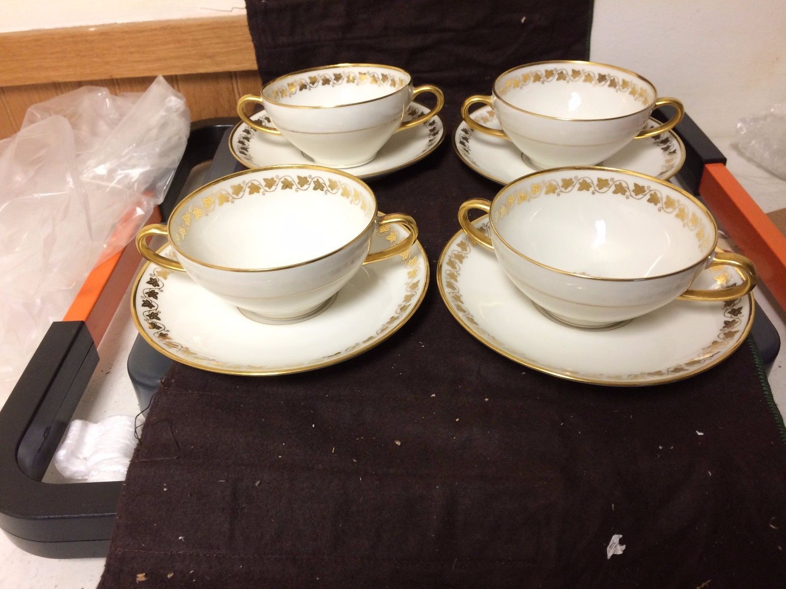 Title (ebay affiliate link): Antique Sevres Chateau De St. Cloud Porcelain 4 Bullion Soup Cups & Saucers