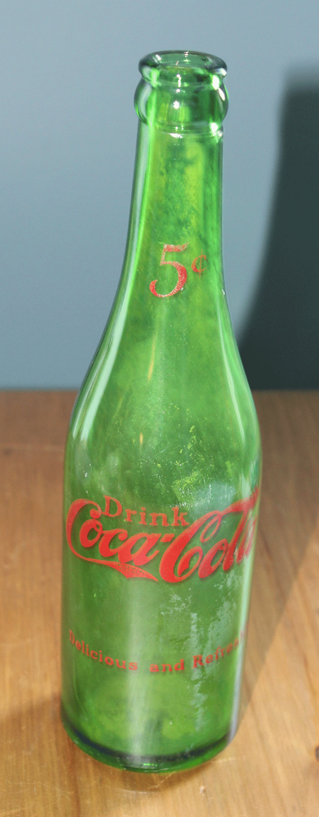 RARE COLLECTOR''S ESTATE FIND Antique 5c Coca Cola Bottle GREEN Marked 30N