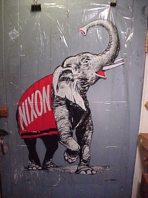 Title (ebay affiliate link): Orig 1968 RICHARD NIXON Campaign Clear WINDOW POSTER w GOP Elephant 45 x 29