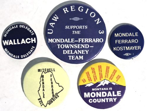 Title (ebay affiliate link): S469. VINTAGE: Set of 5: MONDALE COATTAIL Pinback Buttons (1980''s) SCARCE }