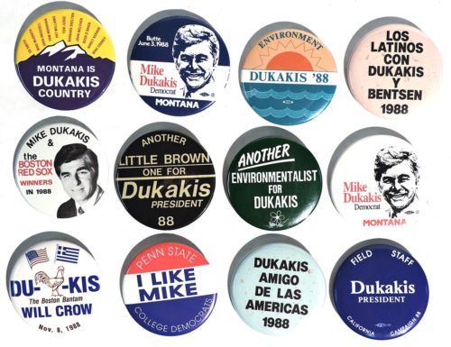 Title (ebay affiliate link): S467. VINTAGE: Set of 12: MIKE DUKAKIS Campaign Pinback Buttons (1988) }