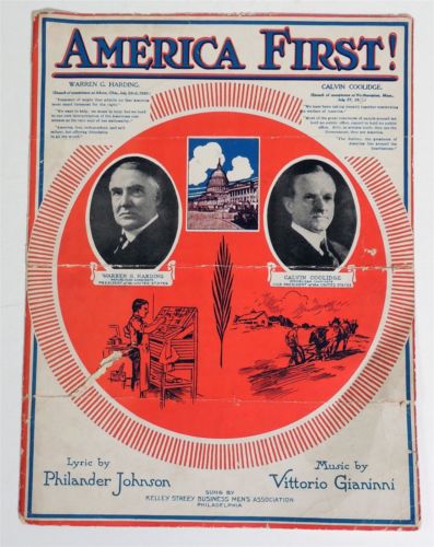 Title (ebay affiliate link): M109 VINTAGE Warren G Harding Calvin Coolidge AMERICA FIRST Sheet Music (1920) [