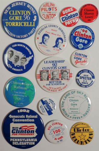 Title (ebay affiliate link): M106 VINTAGE Lot of 16 RARE Bill Clinton Al Gore Campaign Pinback Buttons 2000 }