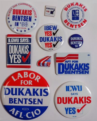 Title (ebay affiliate link): M103 VINTAGE Lot of 22 MIKE DUKAKIS Union Campaign Pinback Buttons (1988) }