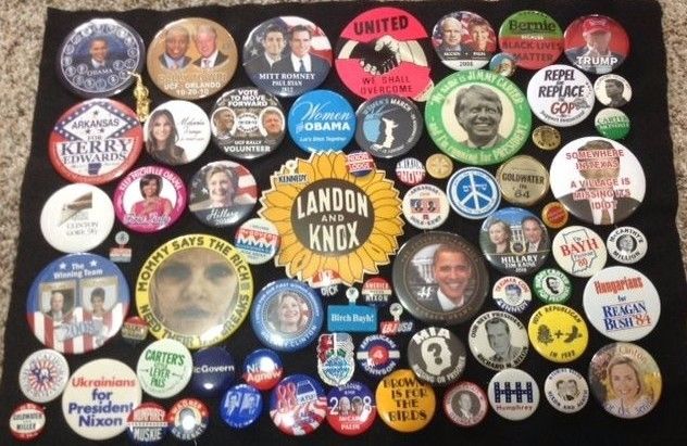 Title (ebay affiliate link): BUTTON LOT SALE ! 80+ different Political,Presidential,CAUSE,related buttons